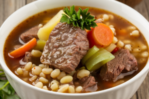 You know those meals that make your kitchen smell like you’ve got life figured out? This is that. Beefy, brothy, loaded with veggies, and barley doing the heavy lifting so your spoon comes back for more—this soup is the definition of cozy domination.