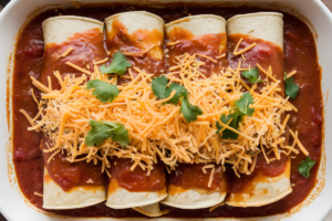 - Green enchilada vibe: Swap red sauce for salsa verde and add a handful of spinach to the filling.
