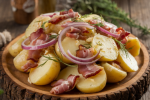 • Bavarian-style simple: Skip mustard and herbs; use only vinegar, broth, onions, bacon, salt, pepper. Minimalist but classic.