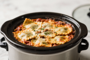 No-Boil Slow Cooker Ravioli Lasagna in Minutes