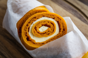 That early roll “trains” the sponge to curve without breaking, so when you unroll and fill, it behaves. The second secret: moisture balance. Pumpkin puree equals tender crumb, but you need the right ratio of flour and eggs to keep it light, not gummy.