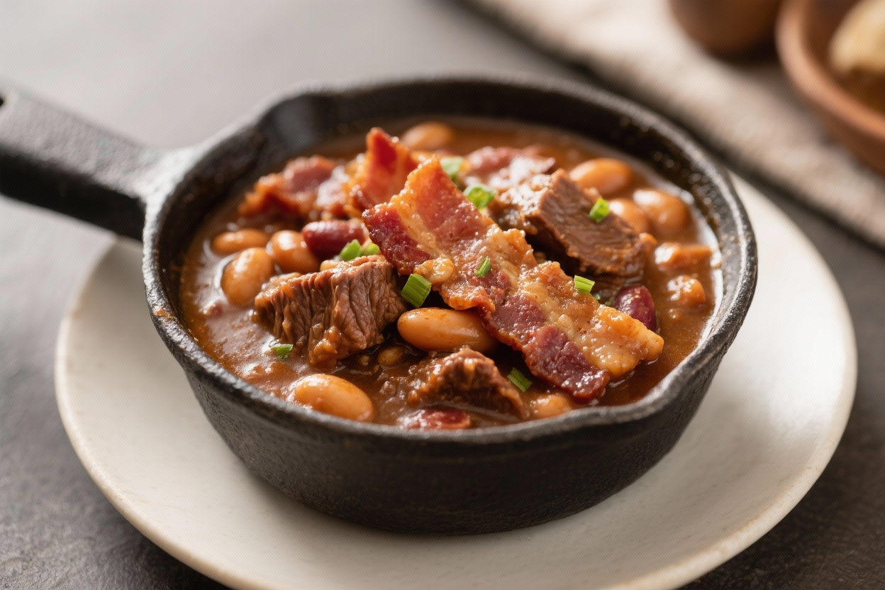 You know those meals that make a room go quiet because everyone’s too busy eating? This is one of them. Big chunks of beef, smoky bacon, and beans soaking up a tomato-chile broth that tastes like a handshake between a campfire and a diner.